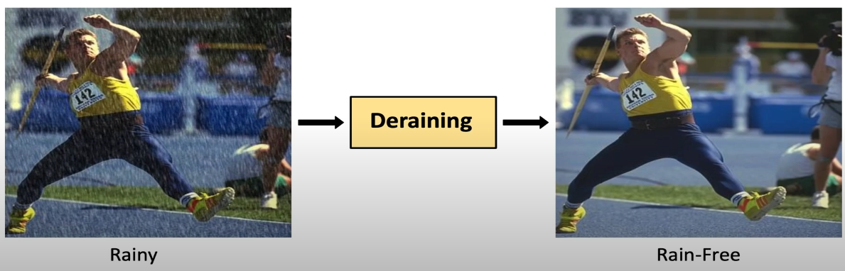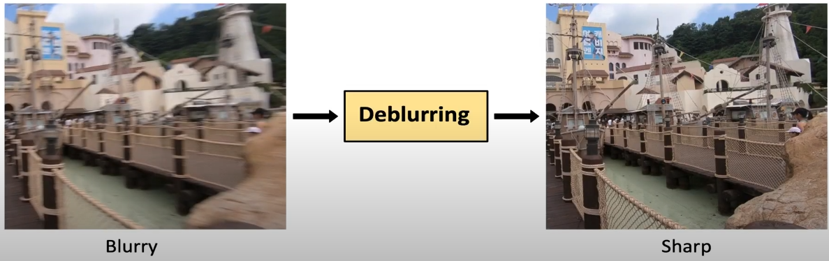 Image Restoration 분야는 이미지의 degraded version에서 original image를 복원해내는 것을 목표로 하고 있다. 비가 오는 이미지에서 비를 제거하거나, 흔들림이 있는 이미지에서 흔들림을 제거하는 등의 task를 수행한다.